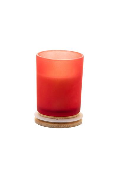 Zapachowa świeca z wosku roślinnego w pojemniku z matowego szkła z bambusową pokrywką. Z 120 gramami wosku. W kartoniku.