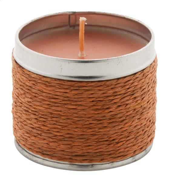 Świeca w metalowym pudełku oplecionym sznurkiem. Description: Świeca w metalowym pudełku oplecionym sznurkiem. Primary Color: brązowy Secondary Color: srebrny Material 1: Metal Rozmiar: o64×50 mm Shape: czekolada Godziny palenia się świec: 8 óra