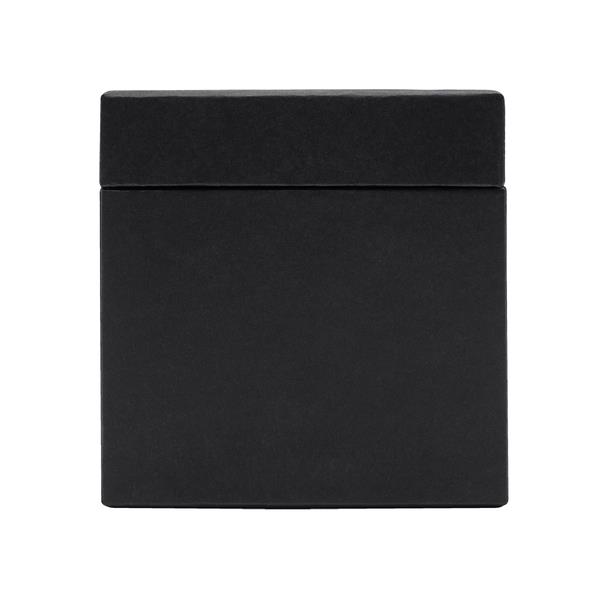 Świeca woskowa na bazie roślinnej, o zapachu drzewa sandałowego. Zamknięta w szklanym czarnym pojemniku z drewnianym wieczkiem. Całość zapakowana w eleganckie pudełko prezentowe. Czas palenia około 40 godzin. Waga wosku: 210 g.