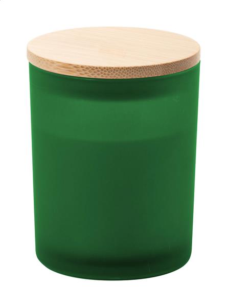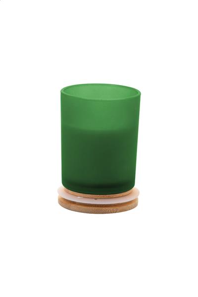 Zapachowa świeca z wosku roślinnego w pojemniku z matowego szkła z bambusową pokrywką. Z 120 gramami wosku. W kartoniku.