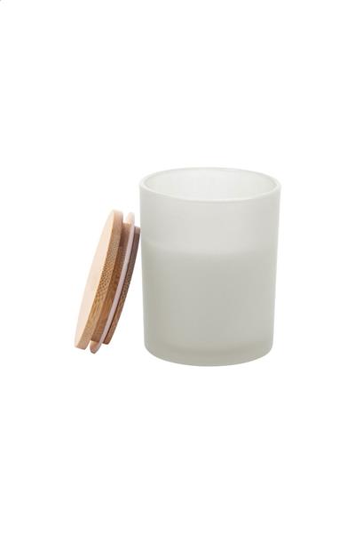 Zapachowa świeca z wosku roślinnego w pojemniku z matowego szkła z bambusową pokrywką. Z 120 gramami wosku. W kartoniku.