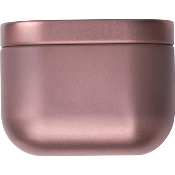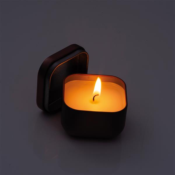 Świeca w metalowej puszce. Nastrojowe światło w kompaktowej formie. Wieczko umożliwia bezpieczne zamknięcie świecy.