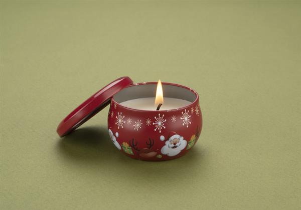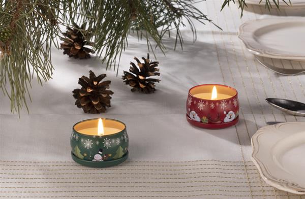 Świeca KERI z naturalnym woskiem sojowym o zapachu delikatnego rumianku. Świeca w oryginalnej zamykanej puszce z nadrukiem świątecznym.