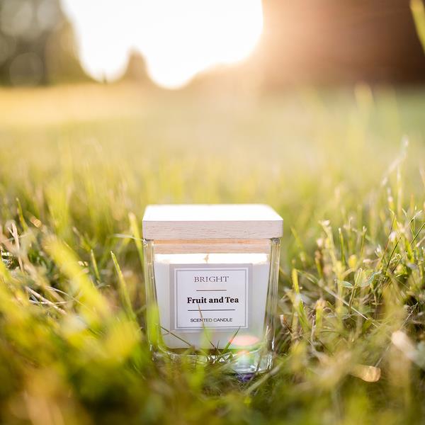 Świeca zapachowa w szkle, zamykana drewnianą pokrywką. Aksamitny zapach zimowych owoców i herbaty, wprowadza w stan relaksu i odprężenia. Świeca może ponadto stanowić świetny element dekoracyjny wnętrza. Czas palenia około 36 godzin. Waga wosku 200 g.