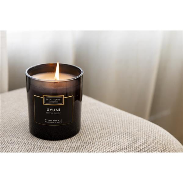 Świeczka zapachowa TREATMENTS, 380 g, zapakowana w elegancki kartonik, świeczka wypełni wnętrze domu ciepłem i niepowtarzalnym zapachem, dostępne różne warianty zapachowe: 03 – Ceylon, 06 – Mahayana, 08 – Omani, 11 – Uyuni, 16 – Zhejinag, 19 – Shinshiro, 21 – Verona, 98 – Samoa. Znakowanie produktu jest możliwe tylko na srebrnej lub złotej folii z czarnym nadrukiem albo na czarnej apli ze srebrnym lub złotym nadrukiem.