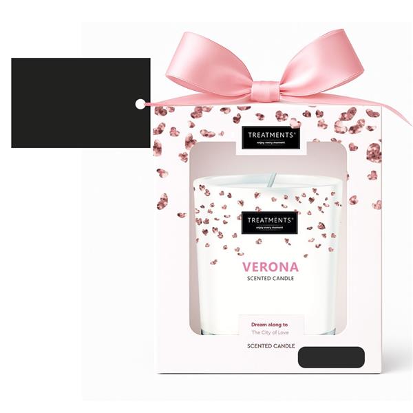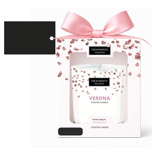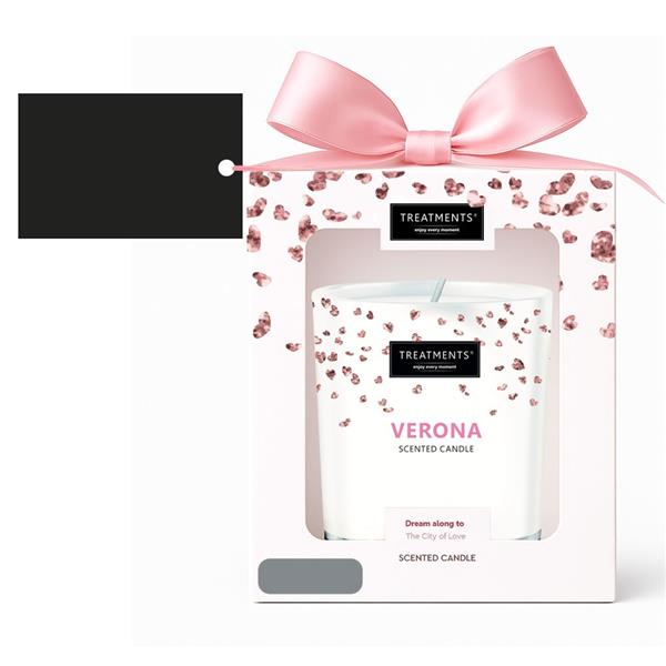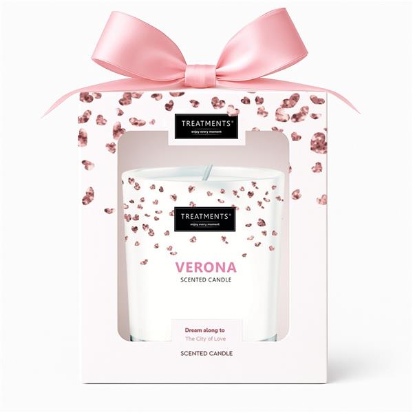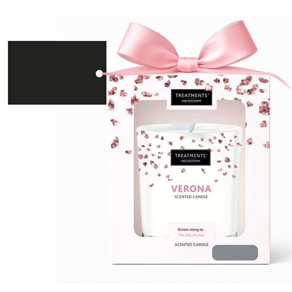 Świeczka zapachowa TREATMENTS, 380 g, zapakowana w elegancki kartonik, świeczka wypełni wnętrze domu ciepłem i niepowtarzalnym zapachem, dostępne różne warianty zapachowe: 03 – Ceylon, 06 – Mahayana, 08 – Omani, 11 – Uyuni, 16 – Zhejinag, 19 – Shinshiro, 21 – Verona, 98 – Samoa. Znakowanie produktu jest możliwe tylko na srebrnej lub złotej folii z czarnym nadrukiem albo na czarnej apli ze srebrnym lub złotym nadrukiem.