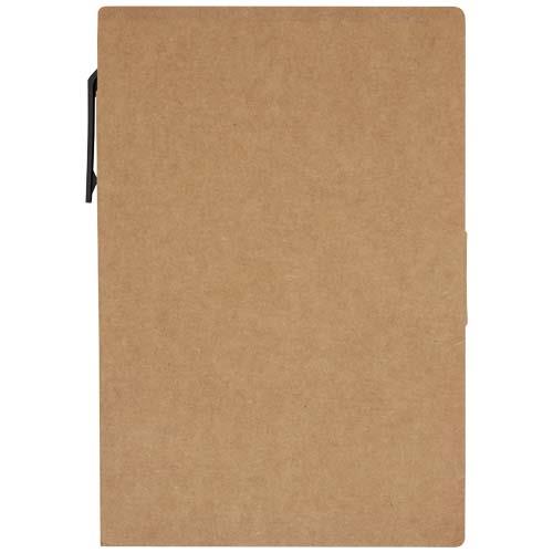 Notes z karteczkami samoprzylepnymi i długopisem Swift to bardzo poręczny dodatek do biura. Zawiera 25 arkuszy białego papieru o gramaturze 70 g/m2 (14,1 x 7,8 cm). W zestawie znajdują się również małe (4,5 x 1,2 cm) i duże (7,5 x 7,5 cm) kolorowe karteczki samoprzylepne. Korpus długopisu wykonany jest z papieru pochodzącego z recyklingu. Kolor tuszu: Czarny. Żywotność: 500 metrów. Rozmiar stalówki: 1,00 mm.