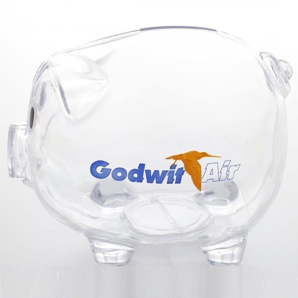 Świnka – skarbonka LEICESTER wykonana z transparentnego plastiku. Produkt dostępny w bogatej gamie kolorystycznej.