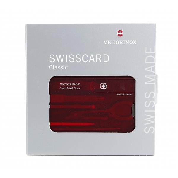 Swisscard to niewielka karta, którą możesz schować w portfelu czy kieszeni. Swisscard wyposażony jest w 10 przydatnych narzędzi: 1. Nóż (również do otwierania listów) 2. Pilnik do paznokci ze 3. – Śrubokrętem 4. Nożyczki 5. Pęseta 6. Wykałaczka 7. Długopis 8. Szpilka 9. Miarka z podziałką centymetrową 10. Miarka z podziałką calową
