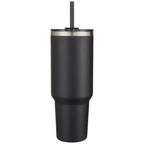 Kubek z podwójnymi ściankami z miedzianą izolacją próżniową, posiadający certyfikat RCS, wykonany w 91% ze stali nierdzewnej pochodzącej z recyklingu, która utrzymuje niską temperaturę napojów przez co najmniej 24 godziny. Posiada słomkę Tritan i funkcję przesuwania pokrywki zapobiegającą rozlaniu płynu. Wykonana w 100% z tworzyw sztucznych pochodzących z recyklingu obrotowa pokrywka bezpiecznie utrzymuje słomkę na miejscu i można ją łatwo obrócić, aby odsłonić otwór na napój. Trwała zewnętrzna powłoka proszkowa. Pojemność: 1200 ml. Tylko do mycia ręcznego.