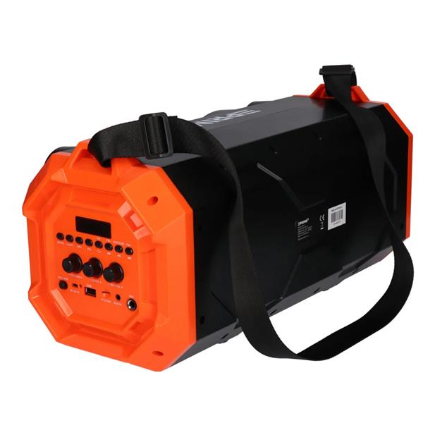 Wygodne przenoszenie umożliwia dołączony pasek, dzięki któremu głośnik można zarzucić na ramię i zabrać ze sobą w dowolne miejsce. APS31 wykonany jest z solidnego, czarnego tworzywa sztucznego z pomarańczowymi akcentami, co sprawia, że prezentuje się niezwykle nowocześnie.