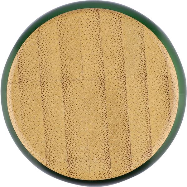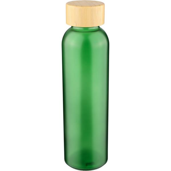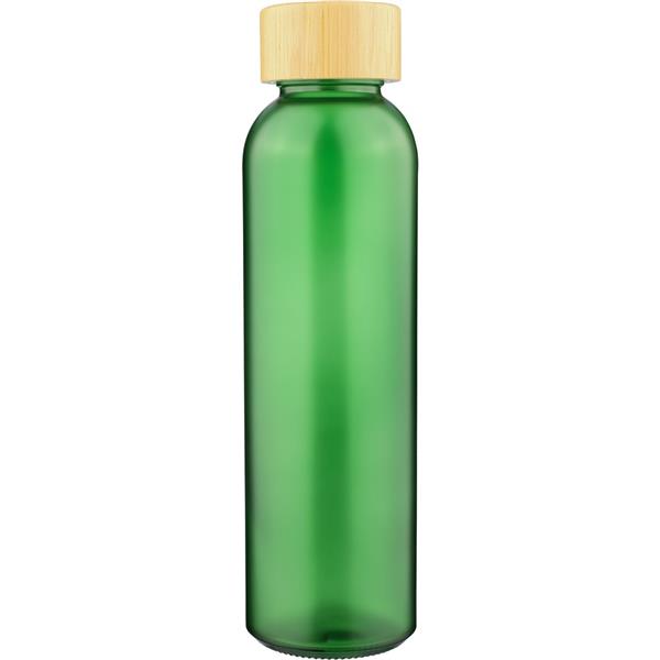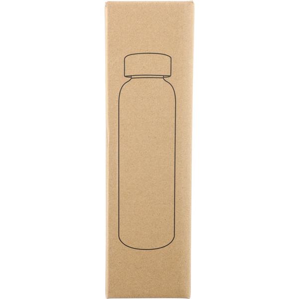 Szklana butelka 500 ml z bambusową nakrętką, matowe wykończenie powierzchni, zapakowana pojedynczo w brązowe kartonowe pudełko