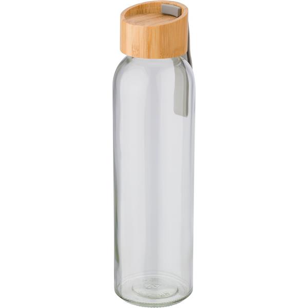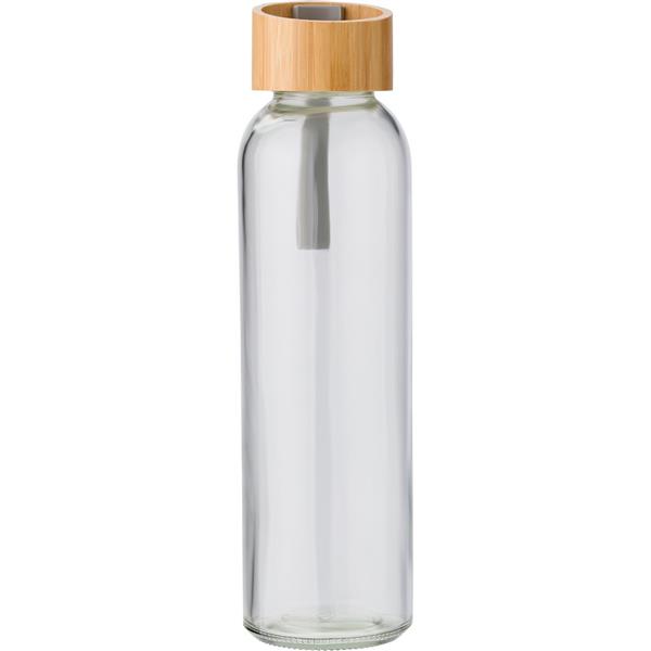 Szklana butelka 600 ml, silikonowy uchwyt, bambusowa zakrętka