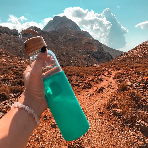 Stylowa butelka wykonana ze szkła borokrzemowego. Bambusowa, szczelna zakrętka z uchwytem i gładkie silikonowe etui to jej dodatkowe atuty. Zawsze warto pamiętać o właściwym nawodnieniu organizmu i mieć ze sobą butelkę ze świeżym sokiem, chłodną wodą czy innym ulubionym napojem.