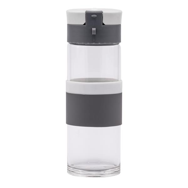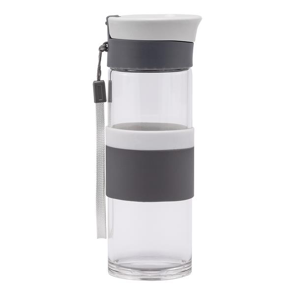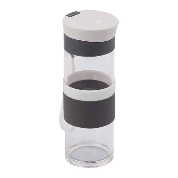 Szczelny bidon o pojemności 440 ml. Wykonany ze specjalnego szkła borokrzemowego, które jest nadzwyczaj przyjazne naszemu zdrowiu, a także lżejsze od tradycyjnego szkła. Bidon wyposażony jest w uchwyt na nadgarstek, opaskę do trzymania oraz szczelne zamknięcie typu leak proof zapobiegające wyciekaniu płynów. Nie zawiera BPA.