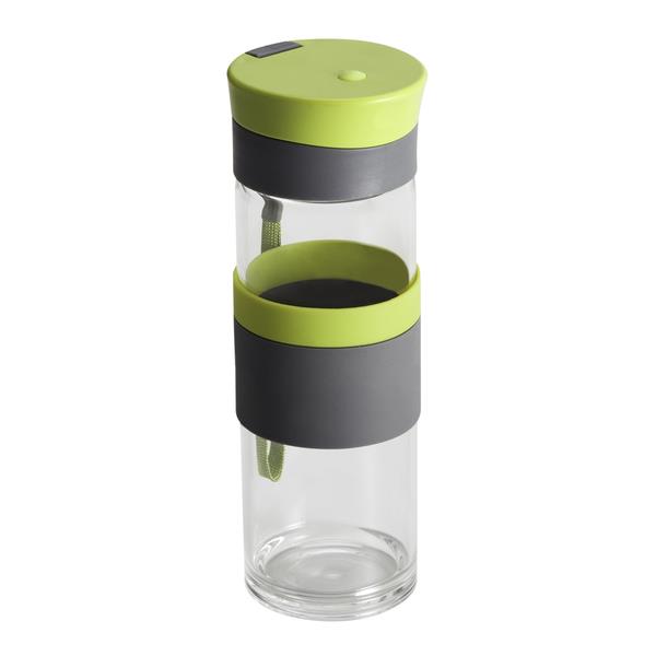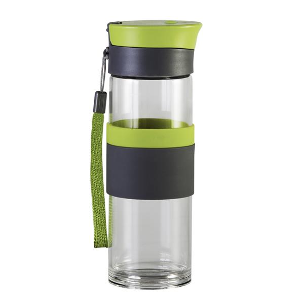 Szczelny bidon o pojemności 440 ml. Wykonany ze specjalnego szkła borokrzemowego, które jest nadzwyczaj przyjazne naszemu zdrowiu, a także lżejsze od tradycyjnego szkła. Bidon wyposażony jest w uchwyt na nadgarstek, opaskę do trzymania oraz szczelne zamknięcie typu leak proof zapobiegające wyciekaniu płynów. Nie zawiera BPA.