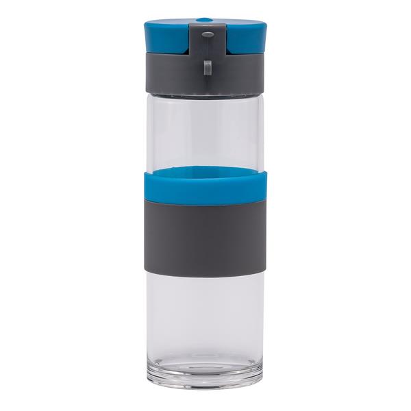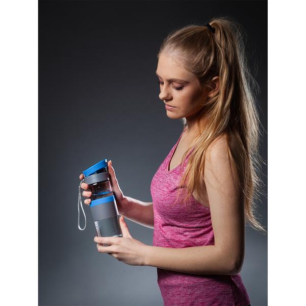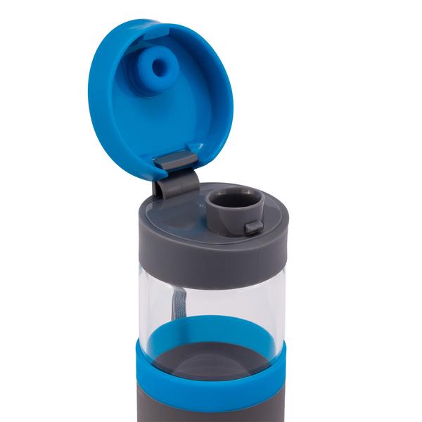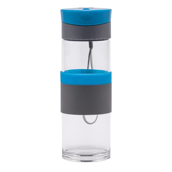 Szczelny bidon o pojemności 440 ml. Wykonany ze specjalnego szkła borokrzemowego, które jest nadzwyczaj przyjazne naszemu zdrowiu, a także lżejsze od tradycyjnego szkła. Bidon wyposażony jest w uchwyt na nadgarstek, opaskę do trzymania oraz szczelne zamknięcie typu leak proof zapobiegające wyciekaniu płynów. Nie zawiera BPA.
