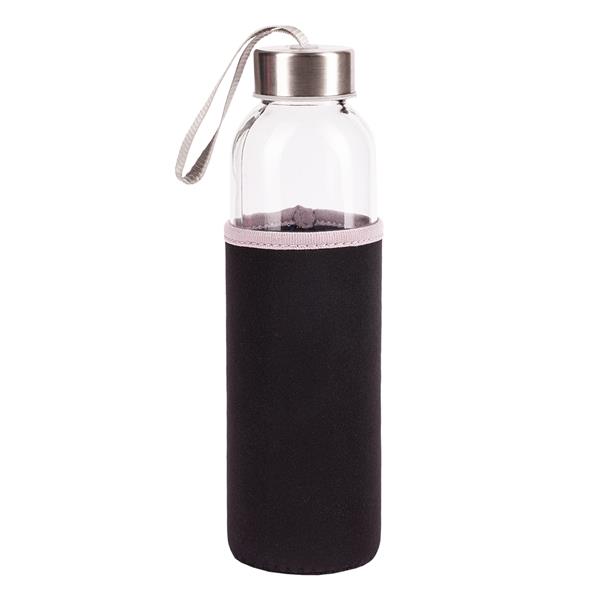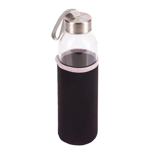 Szczelnie zakręcana szklana butelka o pojemności 500 ml. Wyposażona w neoprenowy pokrowiec oraz uchwyt na nadgarstek.