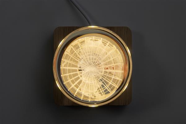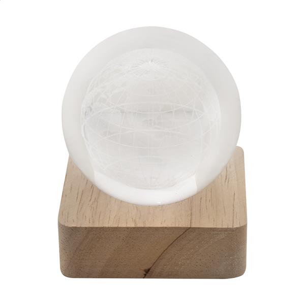 Szklana kula z drewnianą podstawą LED. W zestawie kabel USB do ładowania.