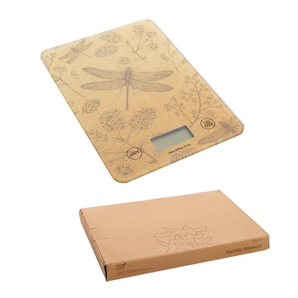 Elegancka szklana waga kuchenna z nadrukiem ważek to niezbędny element każdej kuchni. Waga zawiera 1 × baterię litową CR2032 o napięciu 3V. Zapakowana w prezentowe pudełko Vanilla Season.