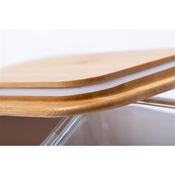 Szklane pudełko śniadaniowe 700 ml z bambusowym wieczkiem i sztućcami, połączone paskiem