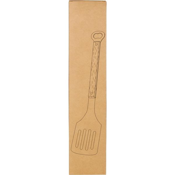 Szpatułka kuchenna z funkcją otwieracza do butelek, drewniany trzon, zapakowany pojedynczo w papierowe pudełko, produkt wykonany ze stali nierdzewnej 430/410 i drewna bukowego