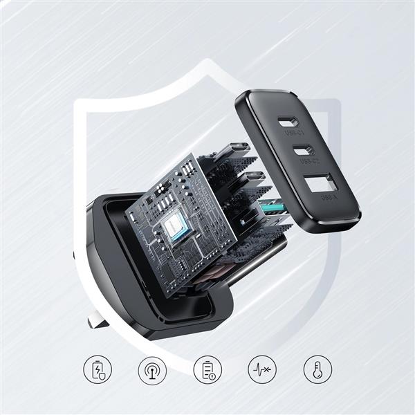 Twoje urządzenia już nigdy nie będą musiały czekać na swoją kolej. Dzięki trzem portom ładowarki Joyroom JR-TCF10 możesz naładować aż trzy urządzenia jednocześnie, oszczędzając czas i eliminując bałagan związany z nadmiarem kabli i ładowarek.