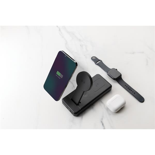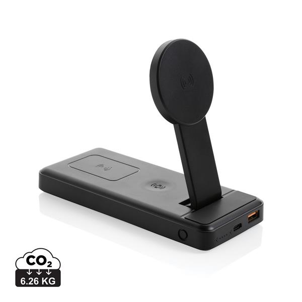 Power bank 10000 mAh 3 w 1, składana, magnetyczna ładowarka bezprzewodowa 15W, 3 cewki ładowania bezprzewodowego (15W, 5W, 2,5W), obudowa wykonana z ABS z recyklingu z certyfikatem RCS, wejście USB typu C 5V/2.5A, 9V/2A, 12V/1.5A, wyjście USB typu C 5V/3A/, 9V/2.22A, 12V/1.67A, wyjście USB 5V/3A, 9V/2A, 12V/1.5A, 5V/4.5A, kabel z TPE z recyklingu z certyfikatem RCS w komplecie, w pudełku z certyfikatem FSC® mix, ślad węglowy produktu: 6,26 kg CO2