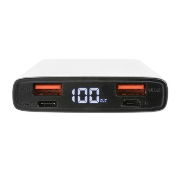Power bank 10000 mAh, wyjście szybkiego ładowania PD (power delivery) 18W, diody wskazujące poziom naładowania, wykonany z aluminium, wbudowany akumulator litowo-polimerowy klasy A o dużej gęstości i trwałości, w pełni naładowane urządzenie może naładować telefon do 5 razy, wejście micro USB 5V/2A, wejście USB typu C 5V/3A, 9V/2A, 12V/1.5A, wyjście USB 5V/2.1A, wyjście QC 3.0 5V/3A, 9V/2A, 12V/1.5A, wyjście USB typu C 5V/3A, 9V/2A, 12V/1.5A 18W max (PD 3.0), wyjście USB 5V/3A, 9V/2A, 12V/1.5A 18W max (PD 3.0), kabel micro USB z TPE bez dodatku PVC w komplecie, ślad węglowy produktu: 4,82 kg CO2