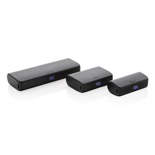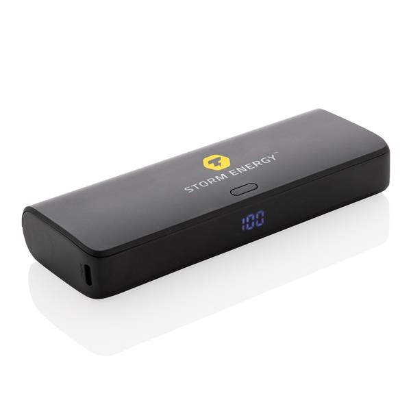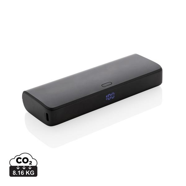 Power bank 20000 mAh, moc ładowania przewodowego 20W, wyświetlacz LED, wykonany z ABS z recyklingu z certyfikatem RCS, całkowita zawartość materiałów obliczona na podstawie wagi całkowitej przedmiotu: 20%, ślad węglowy produktu: 0 kg CO2