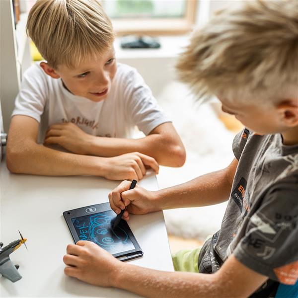 Tablet z ekranem LCD 6,5 cala z rysikiem. Za pomocą przycisku zawartość ekranu znika. Doskonałe urządzenie do robienia notatek i rysunków. Zasilany 1 baterią CR2025 (dołączono).