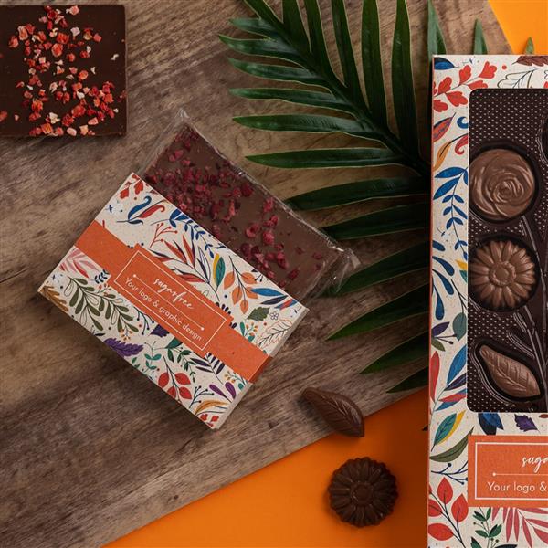 Tabliczka czekolady bez cukru z posypką w 7 wersjach smakowych. Oto produkt, który możesz dostosować do własnych potrzeb, gustu, założeń kampanii marketingowej lub do okoliczności. Oferujemy do wyboru 1 z 11 wariantów posypki.