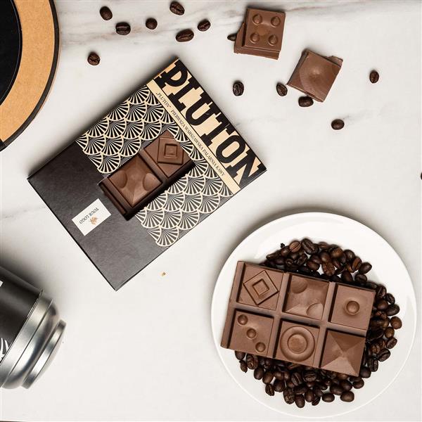 Mleczna czekolada wypełniona nadzieniem z dodatkiem kawy Pluton, pochodzącej z najstarszej polskiej palarni. Uwodzi smakiem, w którym słodycz mlecznej czekolady została przełamana wyrazistym akcentem kawy rzemieślniczo palonej.