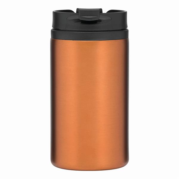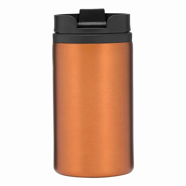 Kubek termiczny TAKE FAST o podwójnych ściankach. Na zewnątrz stal nierdzewna, wewnątrz plastik, plastikowa przykrywka z bezpiecznym zamknięciem otworu do picia, z antypoślizgową podstawą, pojemność ok. 290 ml, pakowany w pudełko.