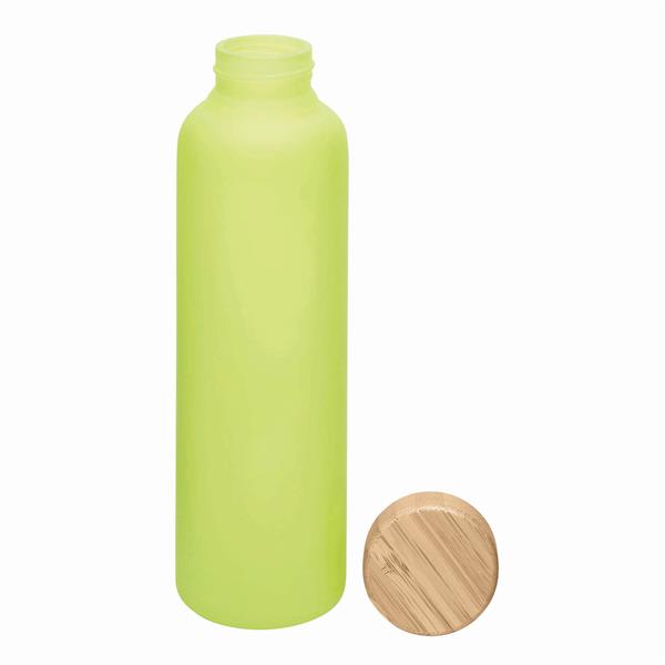 Szklana butelka TAKE FROSTY z bambusową zakrętką. Pojemność ok. 500 ml. Materiał: Szkło/Bambus/Silikon Kolor: zielone jabłko Tagi: Butelki do napojów,artykuły sportowe,fitness,artykuły rekreacyjne,akcesoria podróżne,butelki szklane