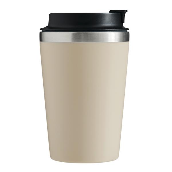 Kubek podróżny TAKE & GO dwuścienny: wykonany ze stali nierdzewnej wewnątrz i tworzywa sztucznego na zewnątrz, bezpiecznie zakręcana plastikowa pokrywka ze zintegrowanym otworem do picia i silikonową uszczelką, pojemność ok. 350 ml, utrzymuje ciepło napojów przez ok. 2 godziny i zimne do 4 godzin.