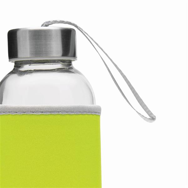 Szklana butelka TAKE WELL z nakrętką i uchwytem do przenoszenia, z kolorową osłonką, pojemność ok. 450 ml.