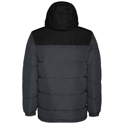 Ocieplana kurtka ze stałym kapturem. Zamek błyskawiczny z przodu kryty plisą. Osłona podbródka. Dwie boczne kieszenie zapinane na zamek. Elastyczne mankiety.