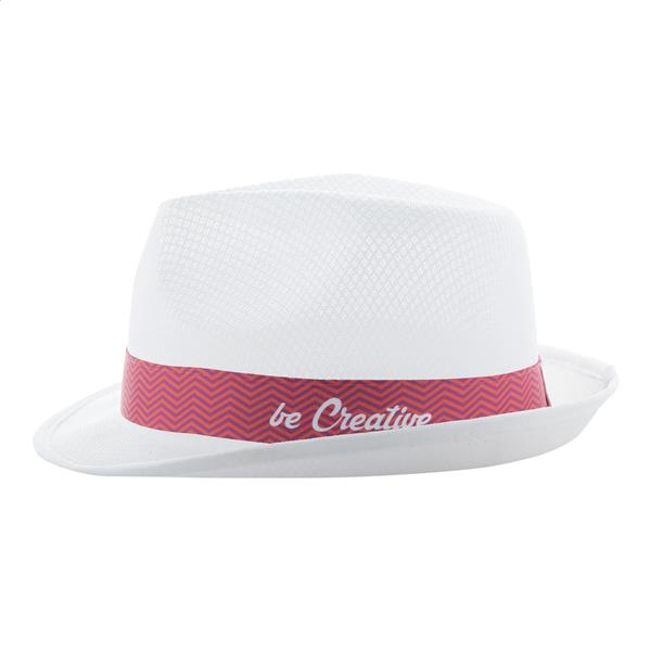 Personalizowana, 30 mm szeroka, poliestrowa tasiemka na kapelusz. Cena zawiera nadruk sublimacyjny. Min. ilość: 100 szt.