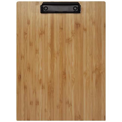Poręczna podkładka wykonana z bambusa. Klips służący do przytrzymywania kartki papieru wykonany jest z żelaza i polipropylenu. Wymiary: 31,2 x 22,4 x 0,4 cm.