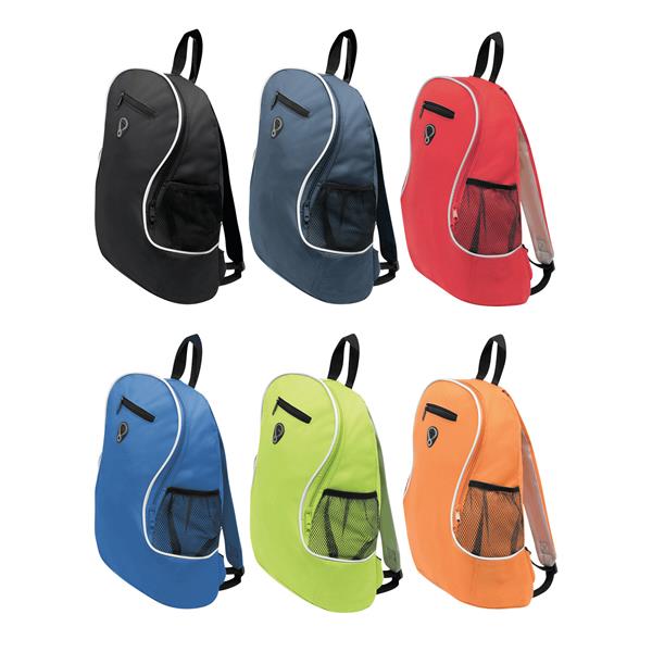 Plecak TEC, kieszeń przednia z otworem na słuchawki, komora główna na suwak, pasek do przenoszenia, 2 siatkowe kieszenie po bokach, usztywniane ramiączka.