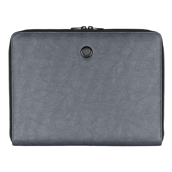 Dobrze skrojona, o ciemnoszarej ziarnistej fakturze i z charakterystyczną matową czarną tabliczką sygnowaną logo Hugo Boss, ta ta teczka konferencyjna A4 zapinana na zamek błyskawiczny jest męska i nowoczesna.