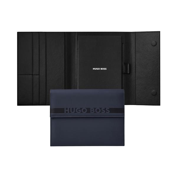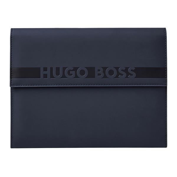 Wykonany z miękkiego w dotyku materiału, ten minimalny folder posiada subtelnie przerośnięte logo HUGO BOSS. Prosty, monochromatyczny i luksusowy, jest łatwy do mieszania i dopasowania w całej ofercie długopisów. Rozmiar: 230 x 175 x 22 mm Kolor: Niebieski