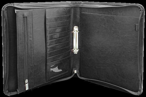 2 kieszenie na dokumenty 8 kieszeni na karty kredytowe Kieszeń na notes Kieszeń transparentna Kieszeń zapinana na suwak Ring Uchwyt na pióro Zamknięcie na suwak