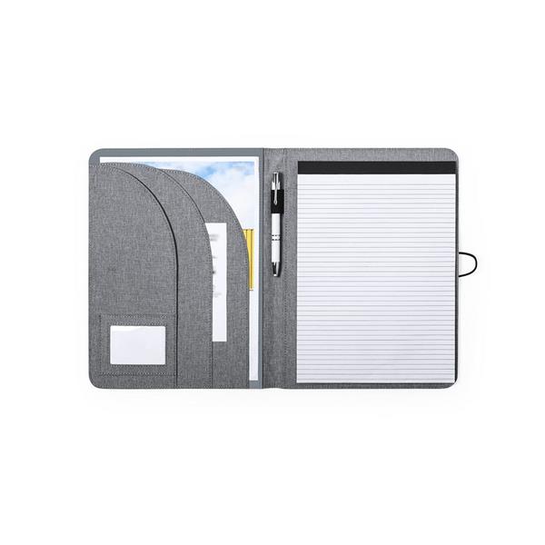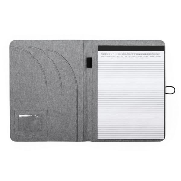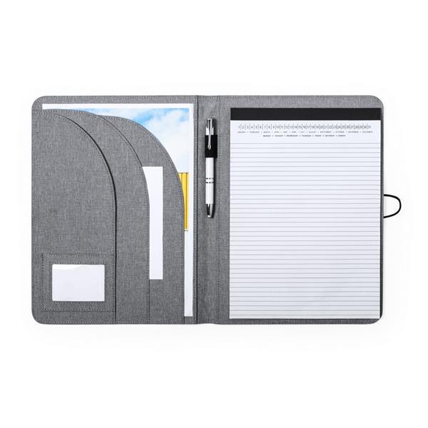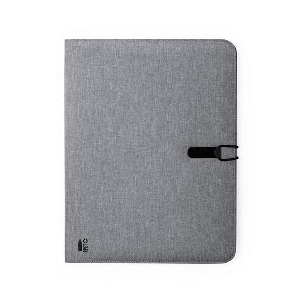 Teczka konferencyjna A4 z notatnikiem (20 jednostronnych kartek w linie), wykonana z RPET, elastyczne zamknięcie, 3 przegrody, uchwyt na kartę, uchwyt na długopis