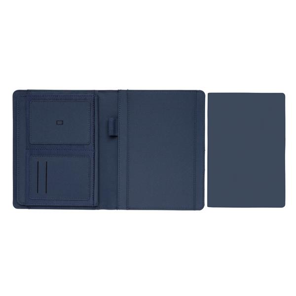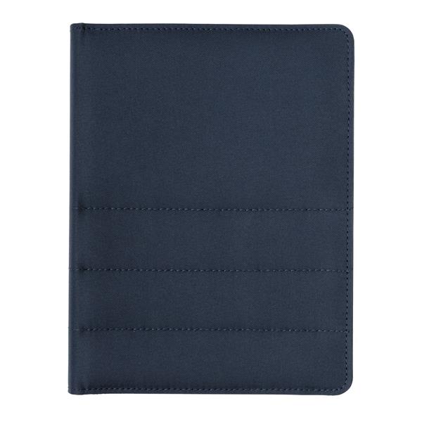 Teczka konferencyjna A5 z notatnikiem (64 kremowe kartki 80 g/m2 z papieru z recyklingu w linie), wewnątrz duża kieszeń, kieszeń na telefon, 2 miejsca na karty kredytowe i pętla na akcesoria do pisania, długopis w komplecie, tkanina zewnętrzna i wewnętrzna z poliestru AWARE™ RPET, który został wykonany z butelek PET pochodzących z recyklingu z identyfikowalnym źródłem, produkt został wykonany z 7 butelek plastikowych poddanych recyklingowi, 2% zysku ze sprzedaży każdego produktu jest przekazywane do fundacji Water.org, nie zawiera PVC
