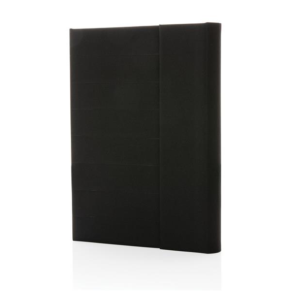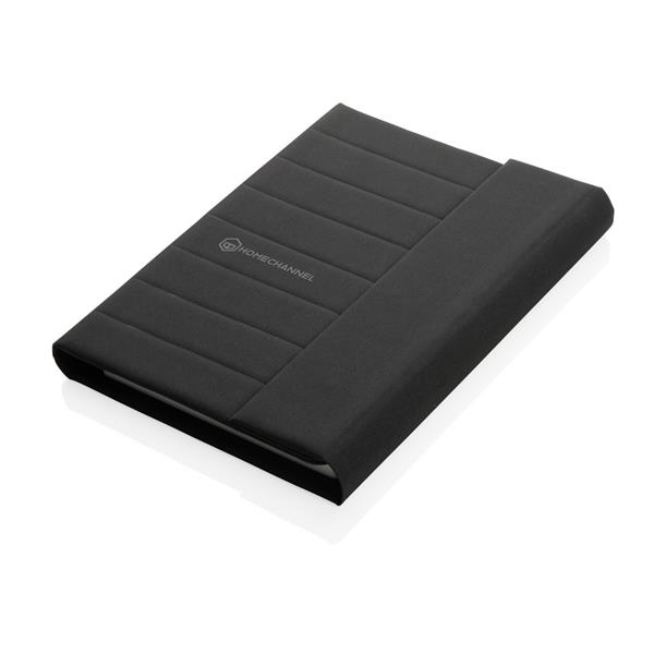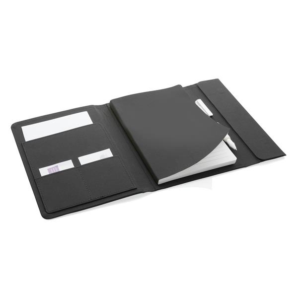 Teczka konferencyjna A5 z notatnikiem (64 kremowe kartki 80 g/m2 w linie), magnetyczne zamknięcie, wewnątrz duża kieszeń, 2 kieszenie na wizytówki i pętla na akcesoria do pisania, wykonana z 6,5 poddanych recyklingowi butelek PET (500 ml), dzięki zastosowaniu technologii AWARE™ wykorzystane materiały są identyfikowalne z pochodzenia, 2% wpływów z każdego sprzedanego produktu z kolekcji Impact jest przekazywane na rzecz Water.org, nie zawiera PVC