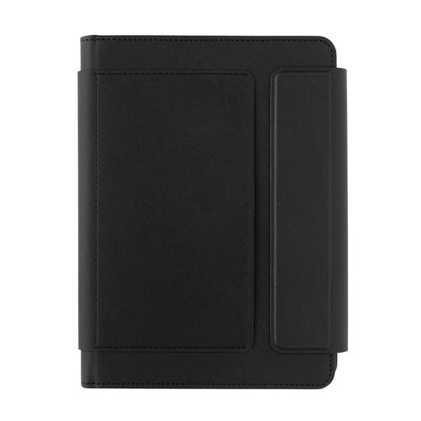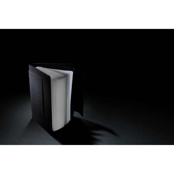 Teczka konferencyjna A5 z notatnikiem (64 kartki z papieru kamiennego w linie), wewnątrz duża kieszeń, 2 kieszenie na wizytówki i pętla na akcesoria do pisania, wykonana w 100% z PU z recyklingu z certyfikatem RCS (Recycled Claim Standard) który gwarantuje, że wykorzystane materiały pochodzą z recyklingu, całkowita zawartość materiału z recyklingu obliczona w oparciu o wagę całkowitą przedmiotu: 17,6%, nie zawiera PVC, ślad węglowy produktu: 1,39 kg CO2