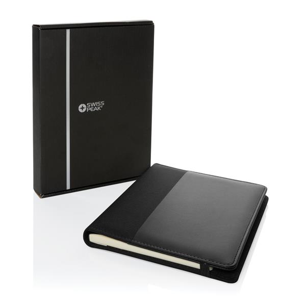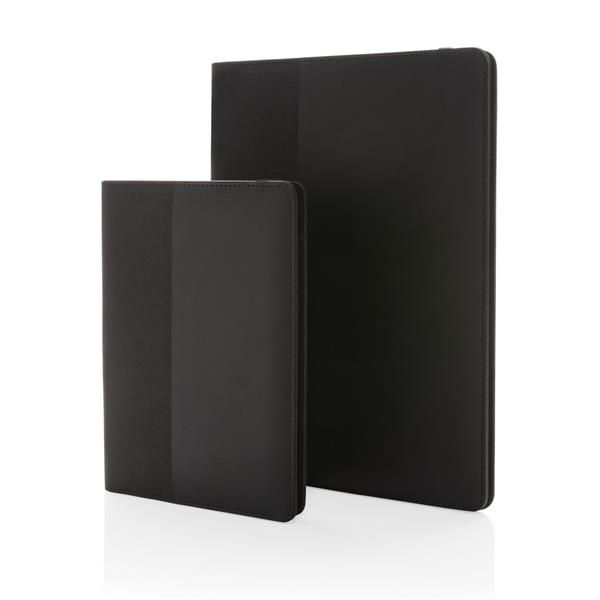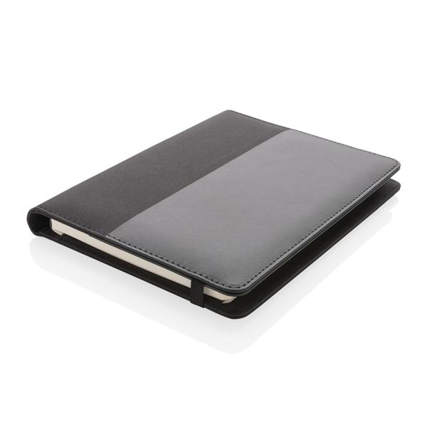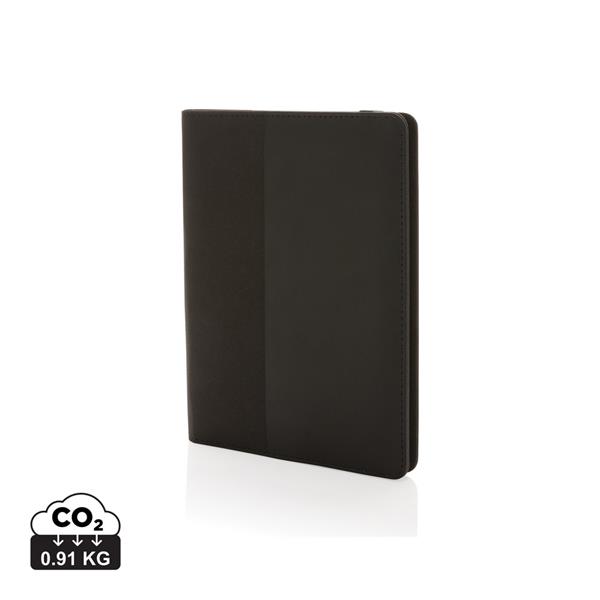 Teczka konferencyjna A5 z notatnikiem (20 kartek kremowych o gramaturze 80 g/m2 z certyfikatem FSC®), kieszenie i pętla na długopis wewnątrz, wykonana z PU i poliestru z recyklingu, posiada znacznik AWARE™, który gwarantuje, że wykorzystane materiały pochodzą z recyklingu, w pudełku z papieru z certyfikatem FSC®, ślad węglowy produktu: 0,91 kg CO2