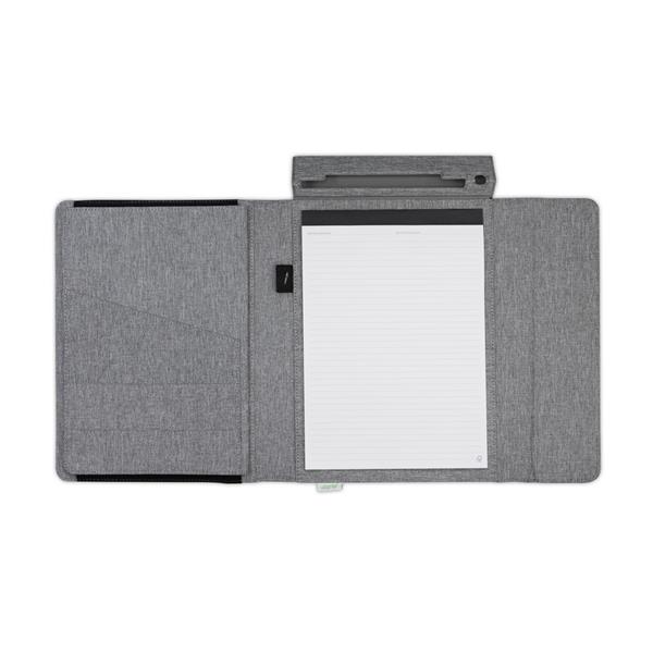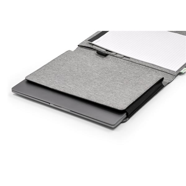 Teczka konferencyjna BrandCharger Noty Folio, miejsce na notatnik A4, kieszeń na tablet lub laptop (do 13 cali) i przegródki na niezbędne rzeczy, takie jak wizytówki, magnetyczne zamknięcie, twarda okładka, rozkładany organizer na biurko, produkt wykonany z powtórnie przetworzonych butelek PET i papieru oraz poliestru i kartonu